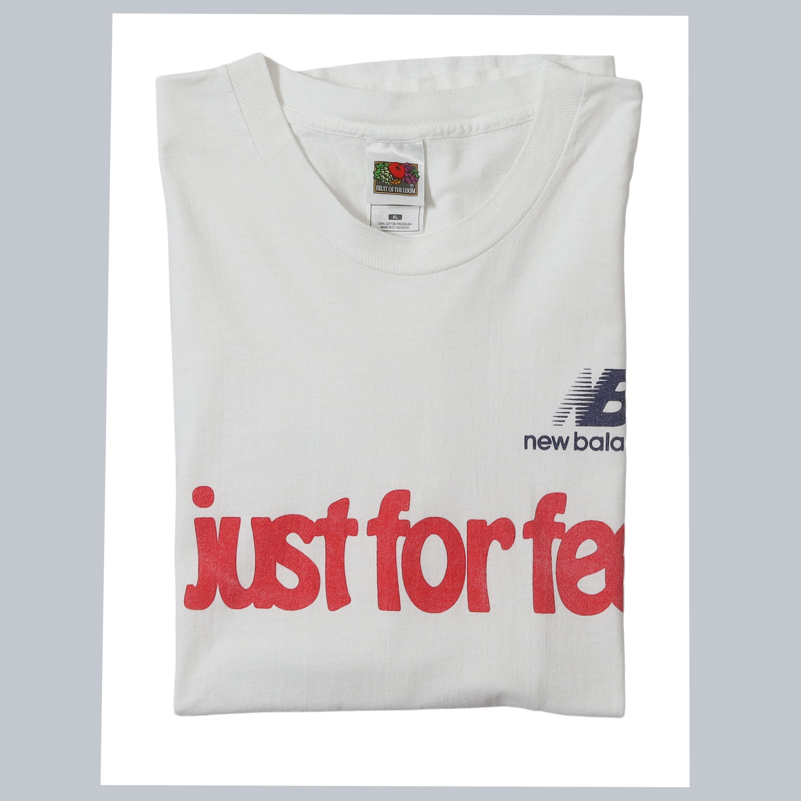 ニューバランスのTシャツです。クラシックなロゴに、ポップなフォントのバランスがとてもセンス溢れるデザイン。今も大人気のブランドですが、広く知られたブランドだからこそ、あえて昔のものを着るというのが洒落てるかと思います。