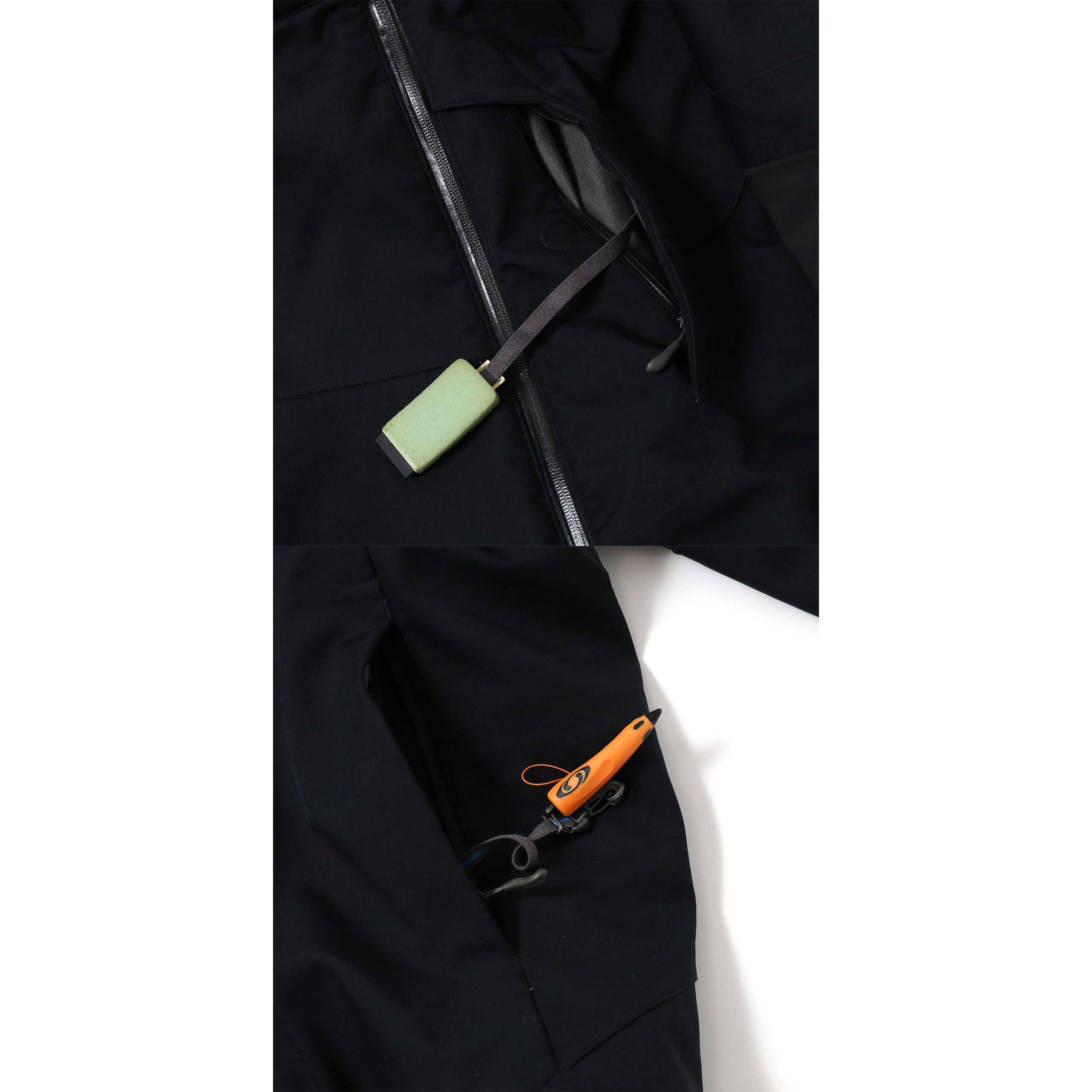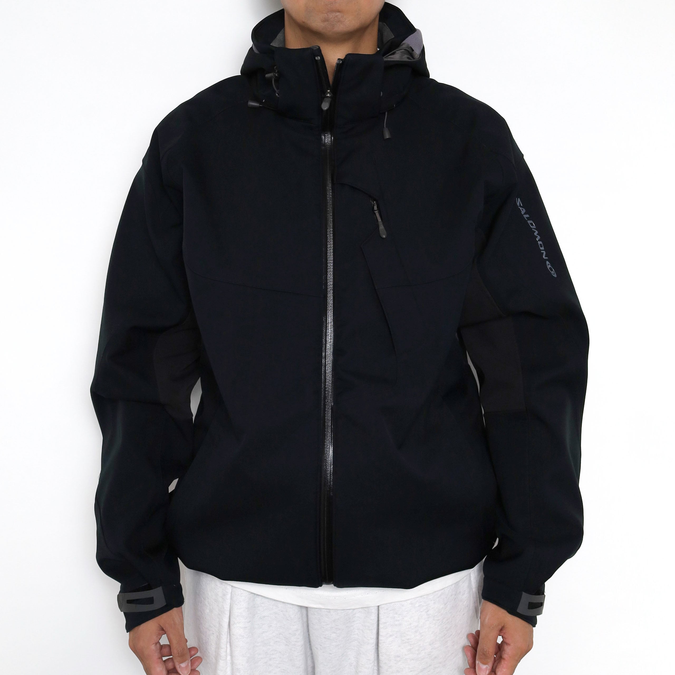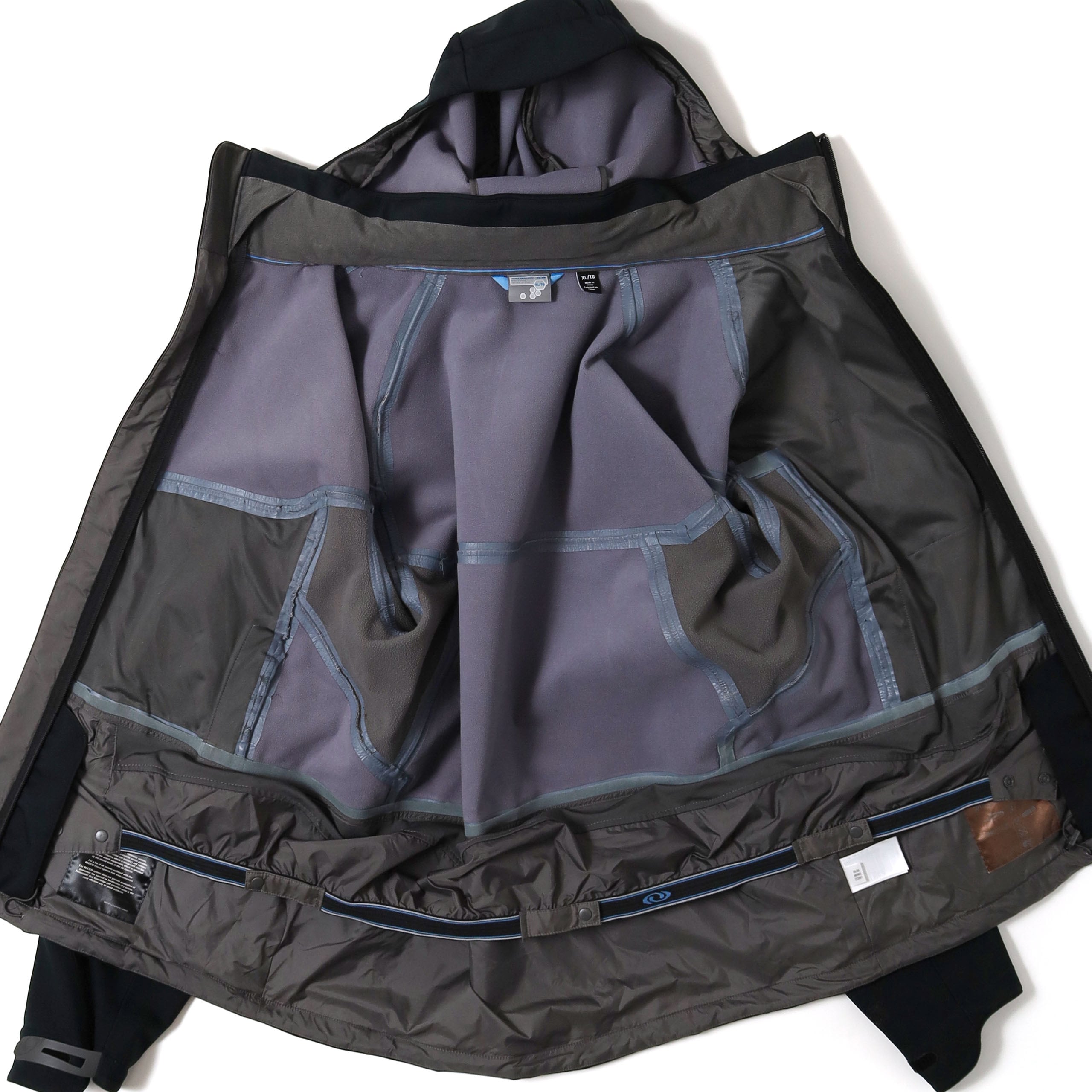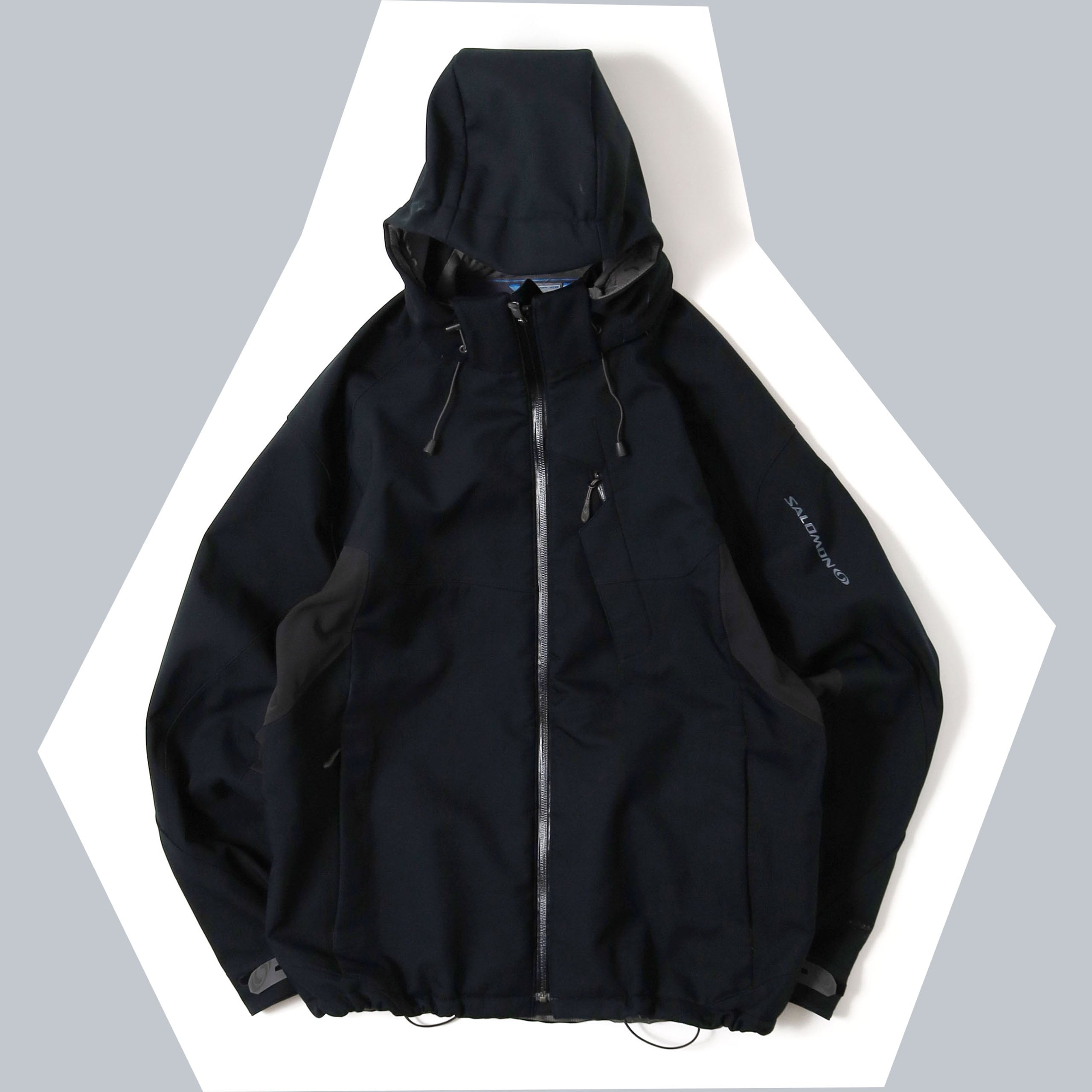 Salomonのソフトシェルジャケットです。古いサロモンのアイテムはポケットの配置の仕方や切り替えが特徴的で、こちらもブラックでそれぞれあまり目立たないものの、細部にこだわりを感じる1着です。ソフトシェルジャケットの割にかなりしっかりした作りで、パウダースカートや、ポケットの中の面白いディテールを見ると、雪山での着用を想定して作られたものかと思います。デタッチャブルのフードで、どちらのパターンでも楽しめます。
