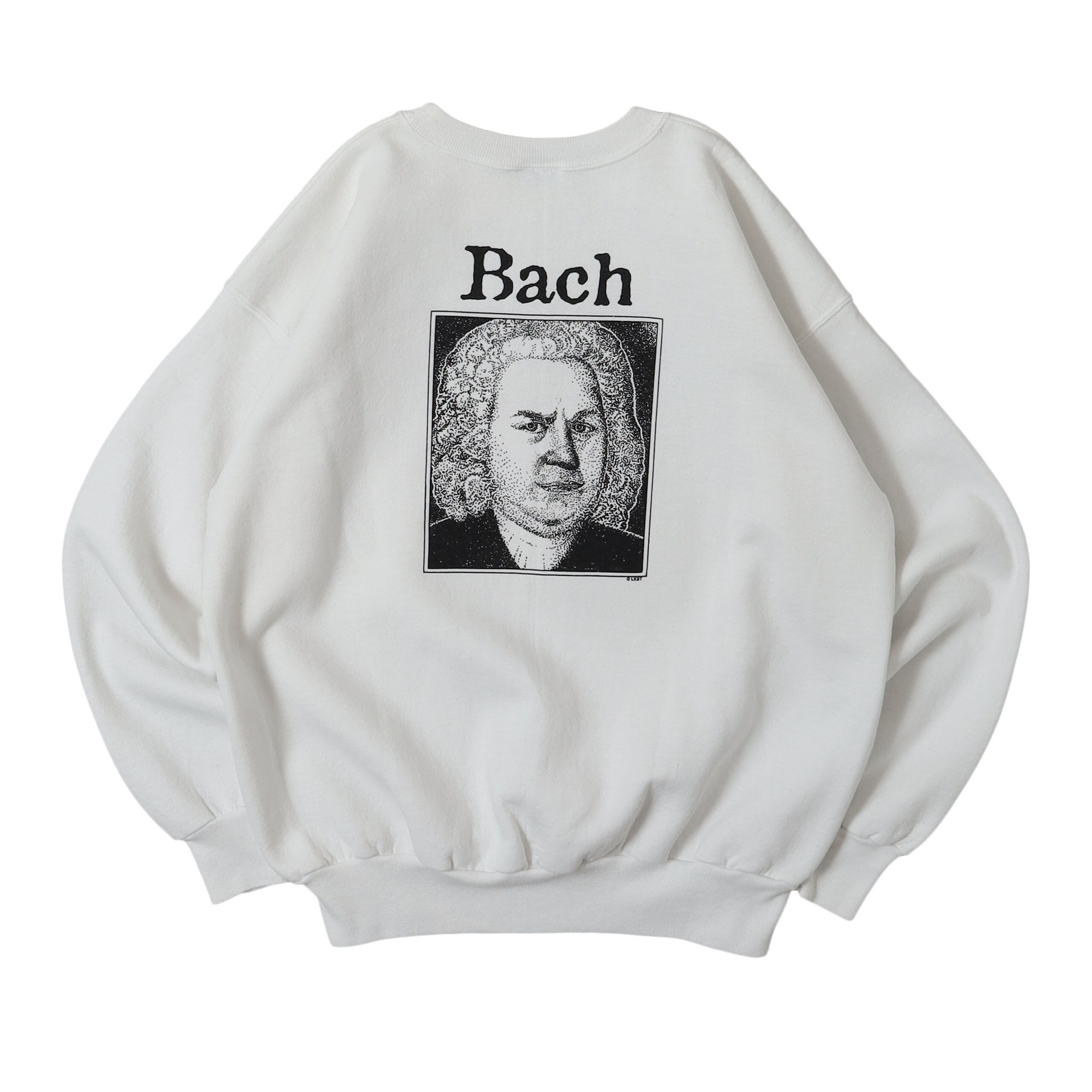 バッハのスウェットです。古着好きな方はもしかしたらご存知の方もいるかもしれません。フロントには "FRONT"、バックには "BACK" ではなく "Bach" という洒落の効いたデザインがたまりません。バッハのイラストもいい感じに気が抜けてて、そんなとこも雰囲気最高の1枚です。
