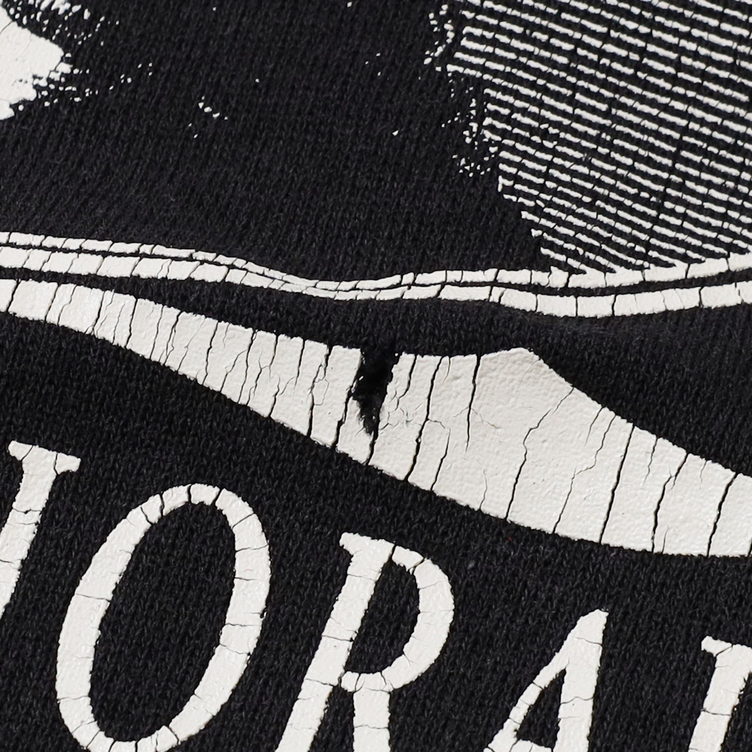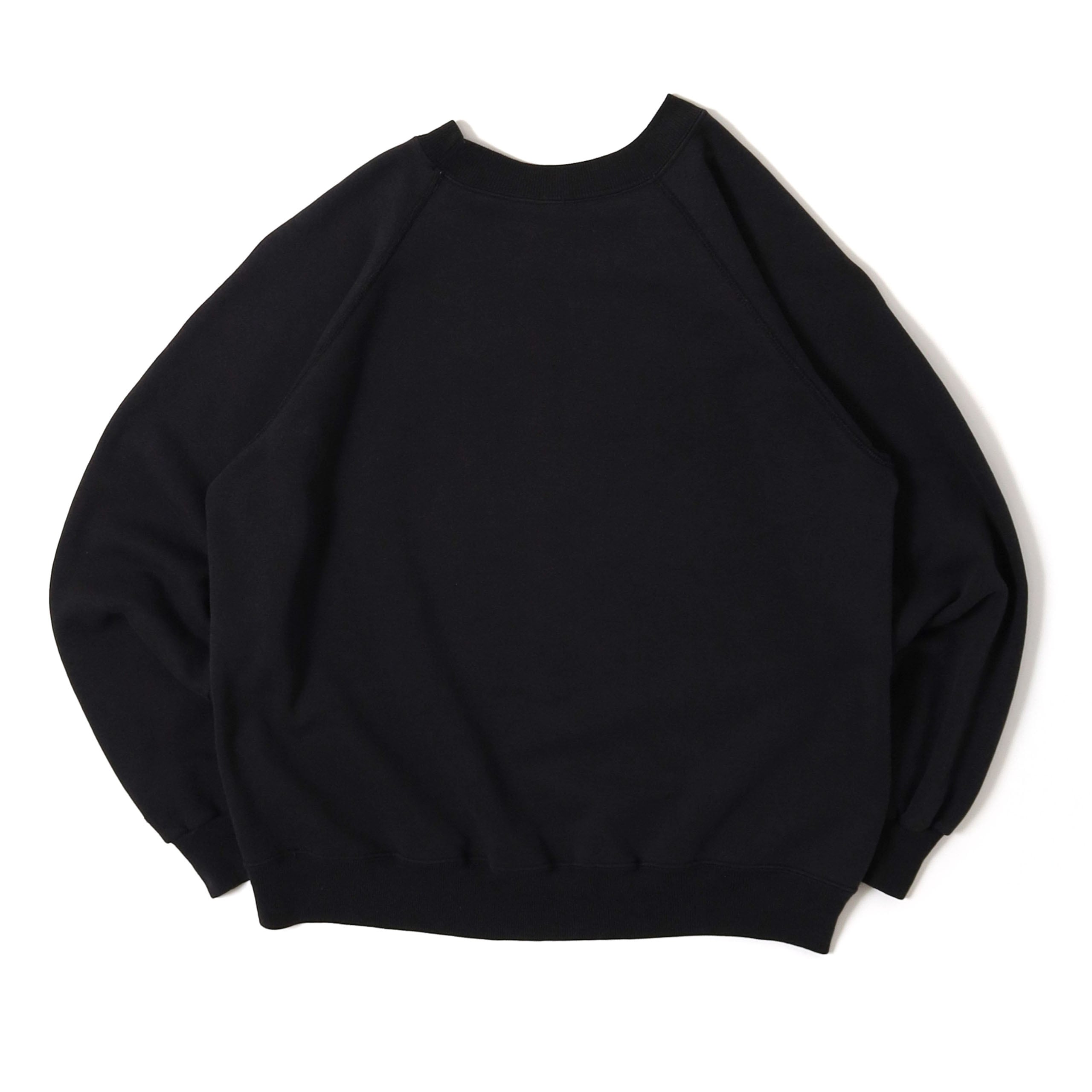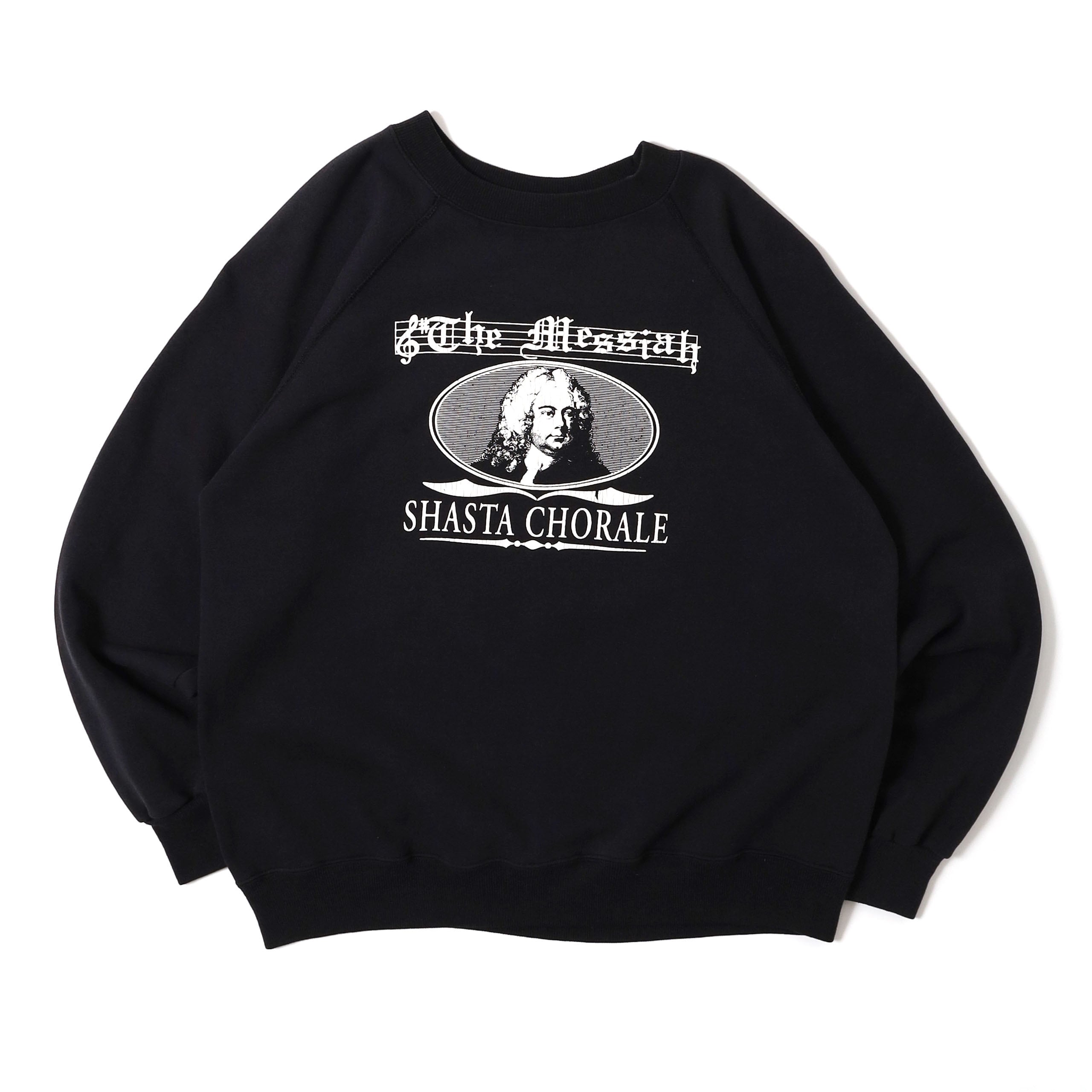 詳細は不明ですが、音楽的のスウェットです。ラグランスリーブに、古着らしいプリントがとてもいい雰囲気の1枚です。ラグランでブラックボディに白のプリントというバランスも、探すとあまりないのではないでしょうか。何かと使い勝手の良いスウェットです。