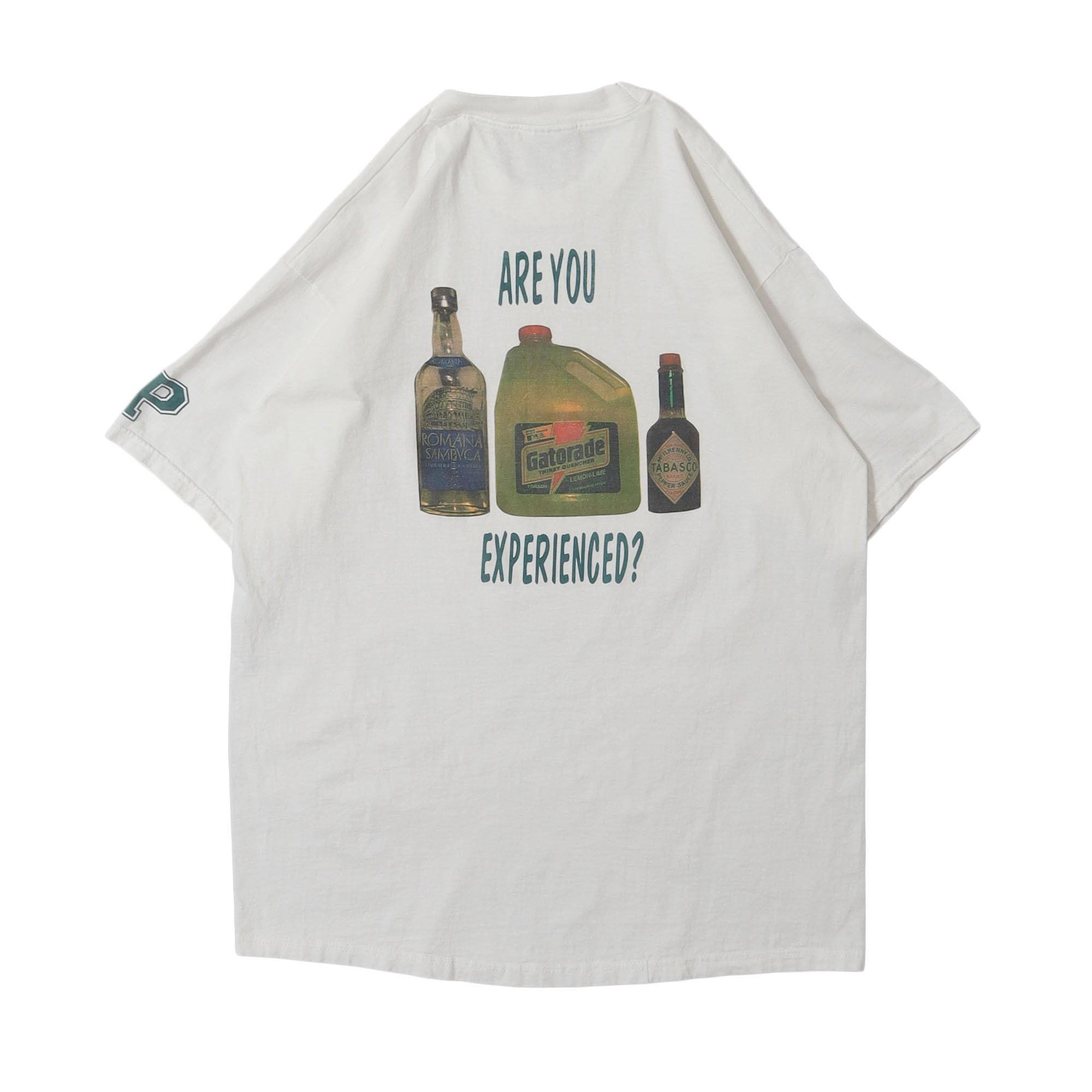 こちらもなんのTシャツかは不明ですが、バックにプリントされたGatoradeやTabascoのプリントが目を惹く1枚。企業モノって感じではないですが、こういった製品がプリントされているデザインがとても珍しく面白いです。プリントのインパクトもしっかりあるので、1枚でしっかり主役になってくれる1枚です。