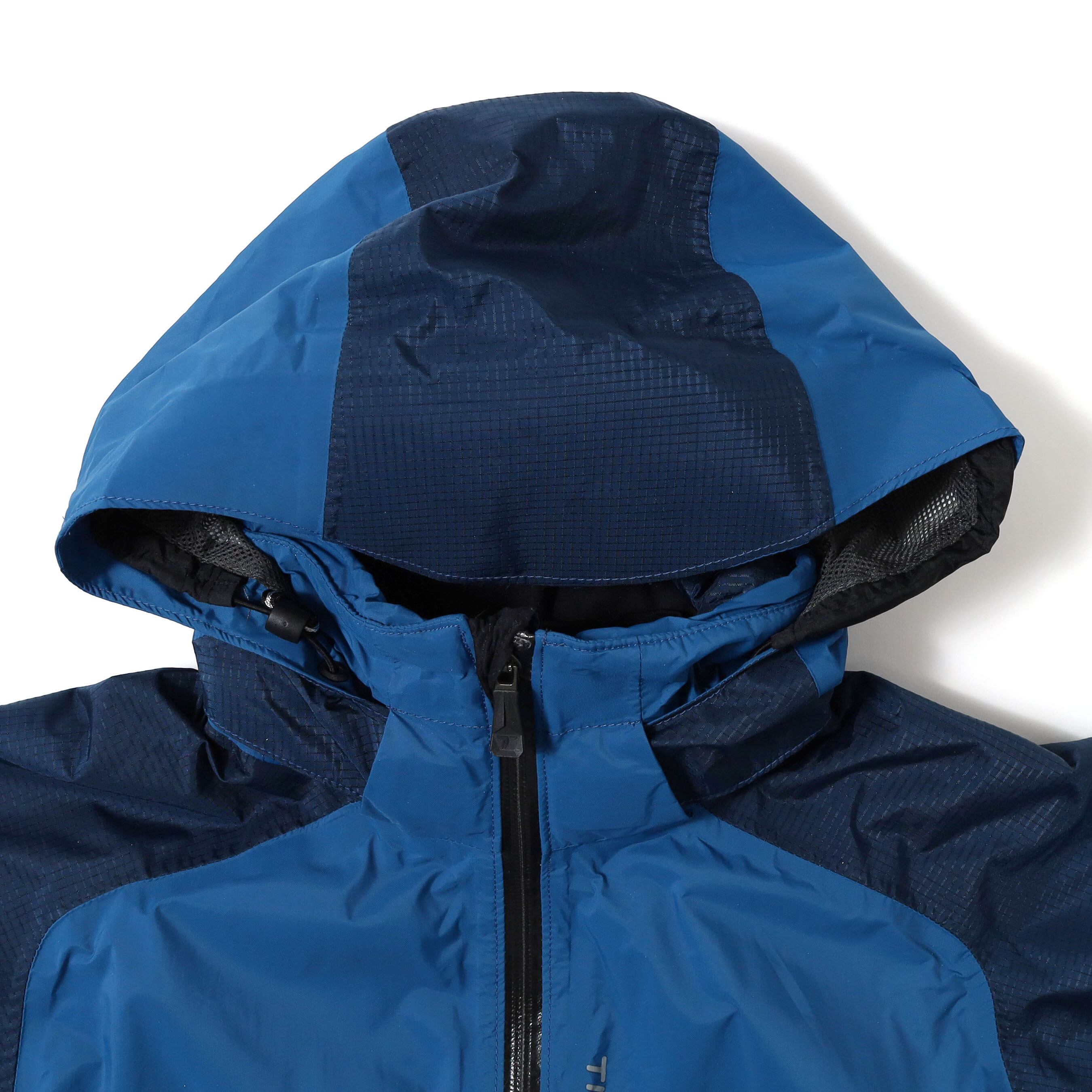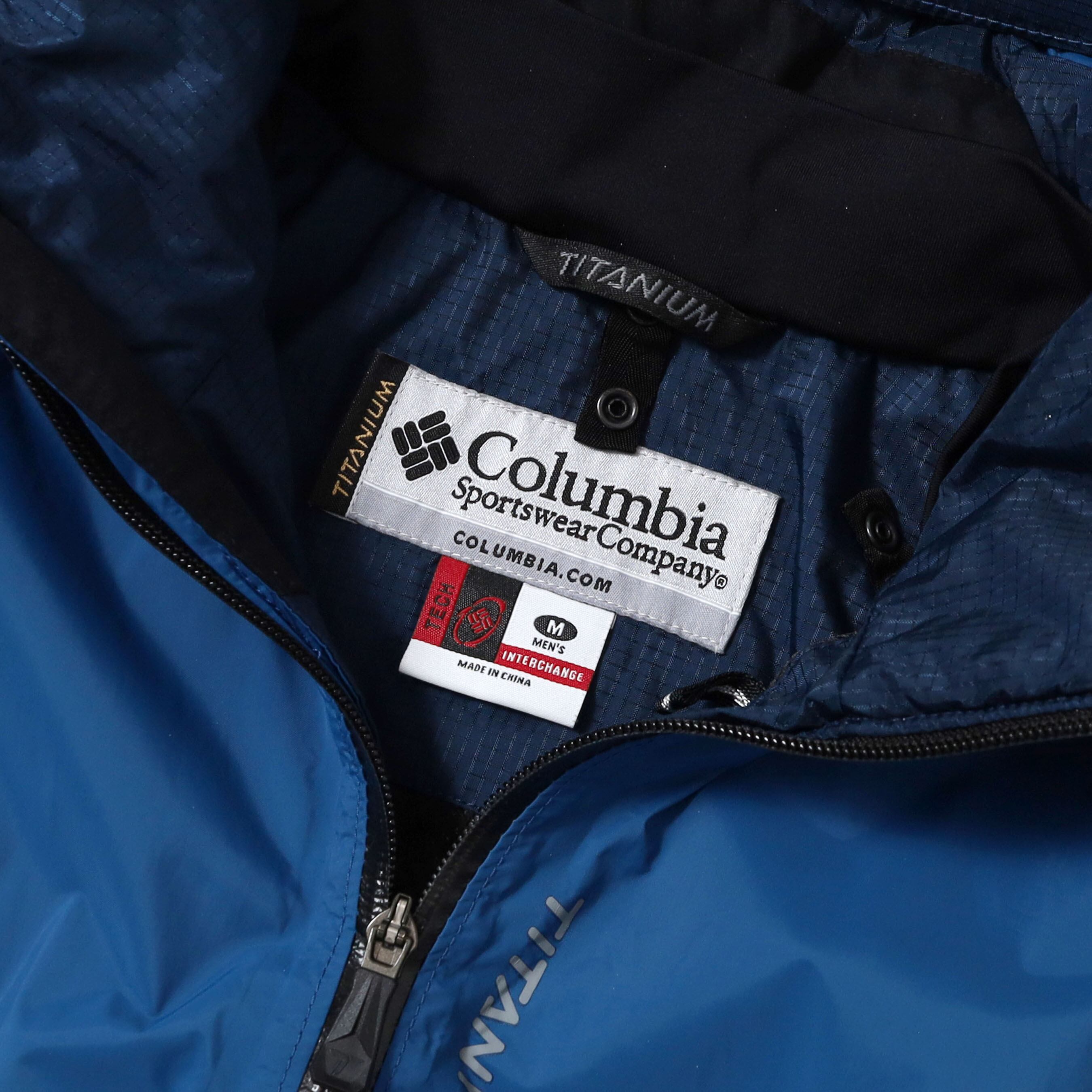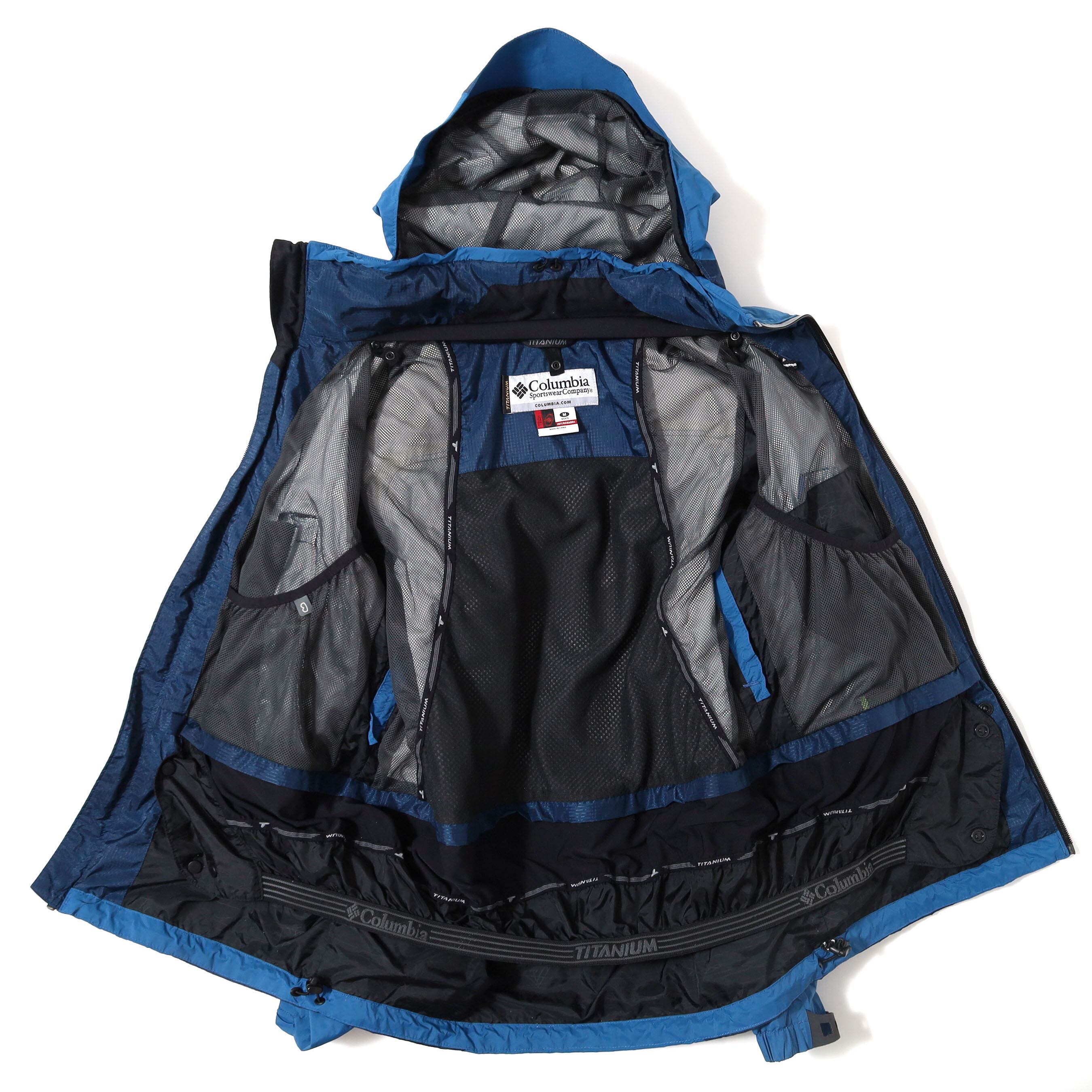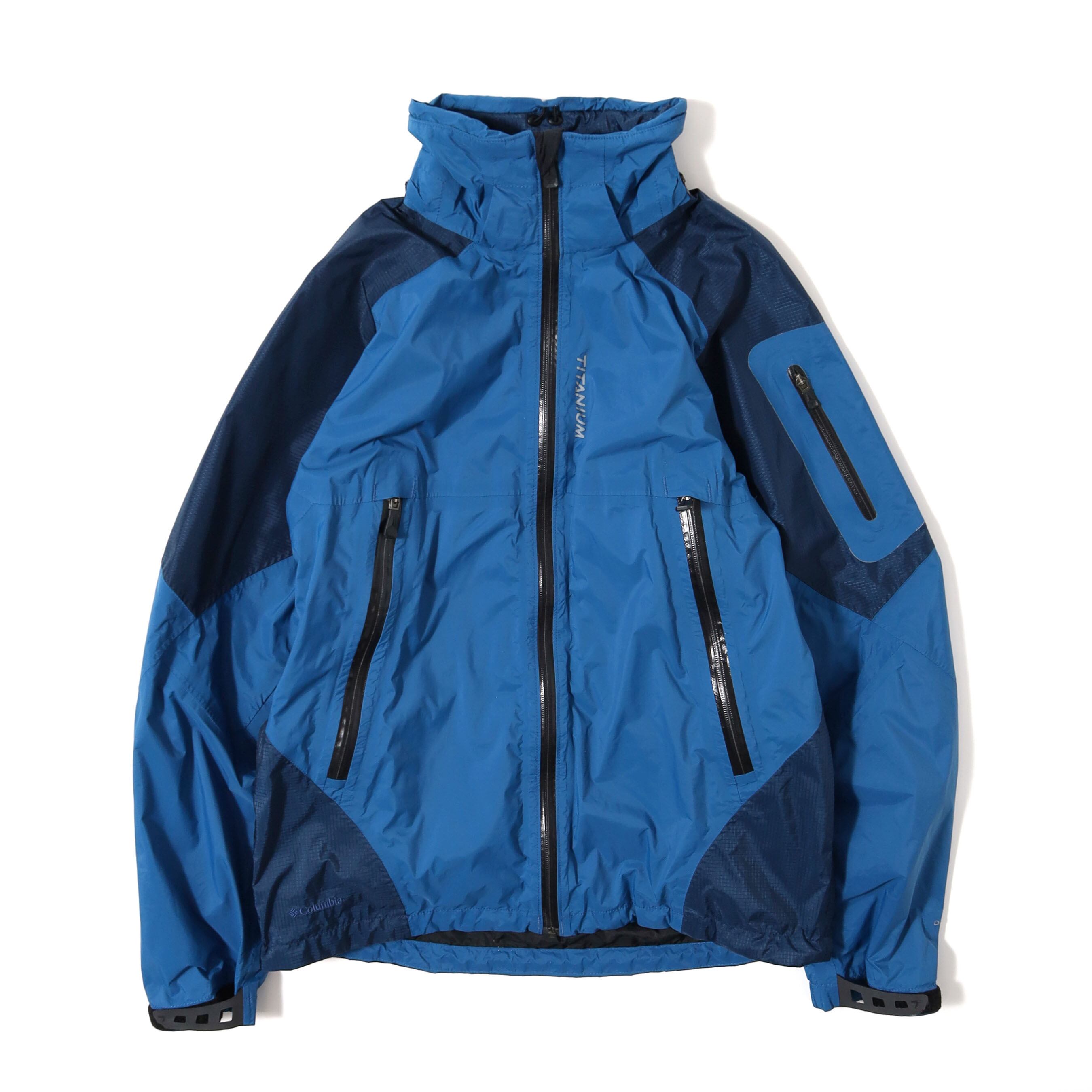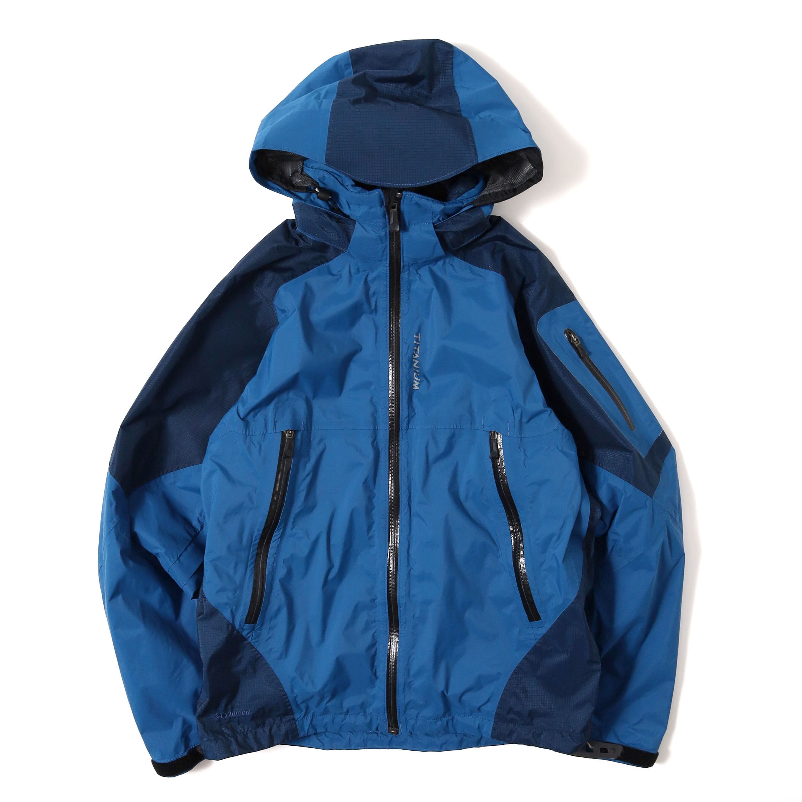 Columbia TITANIUMのジャケットです。スノーウェアラインらしく、パウダースカートや内側の大きなポケット等機能面も抜群で、何より2トーンのブルーのカラーリングが最高にかっこいいです。取り外し可能なフードで、着方を変えられるのも嬉しいポイントです。