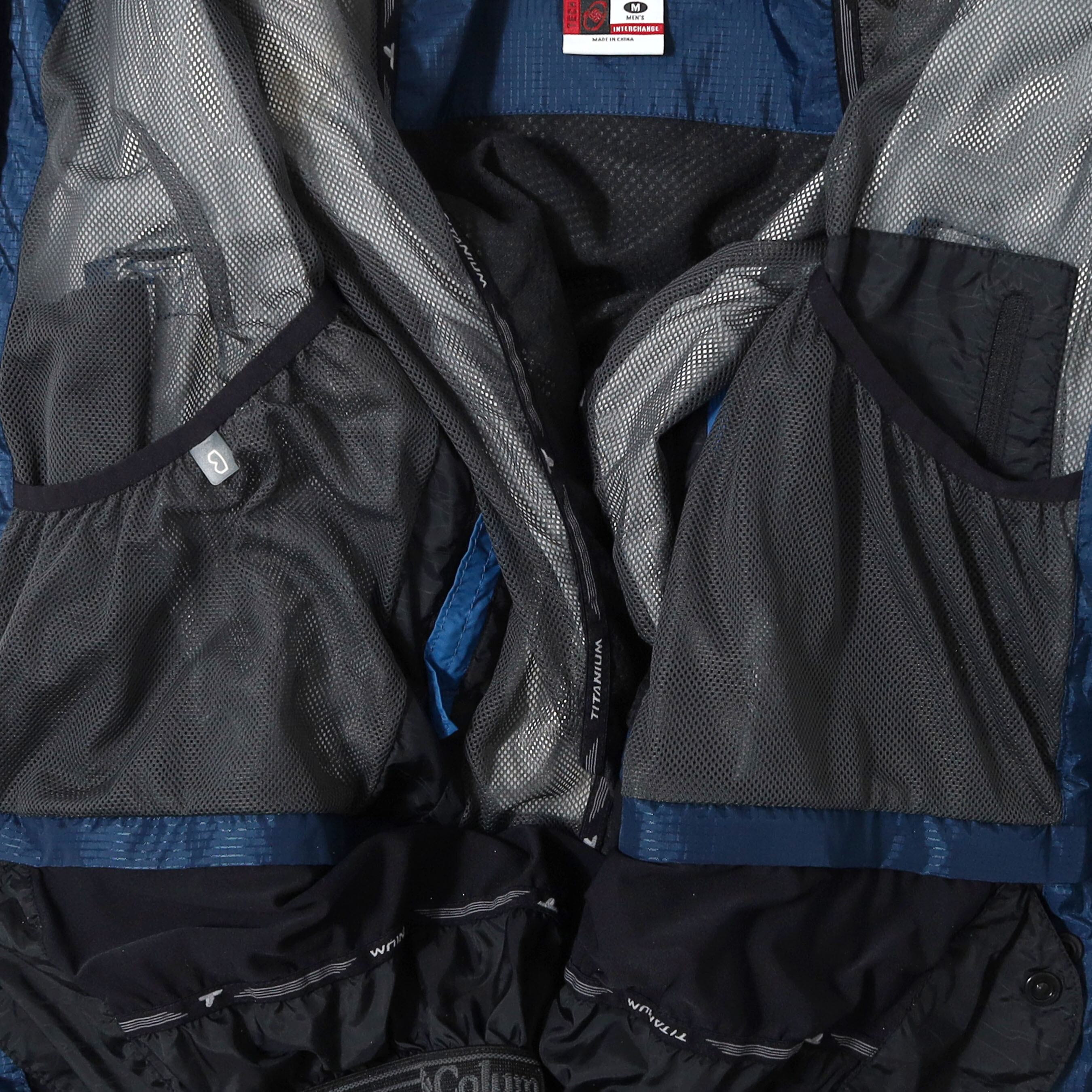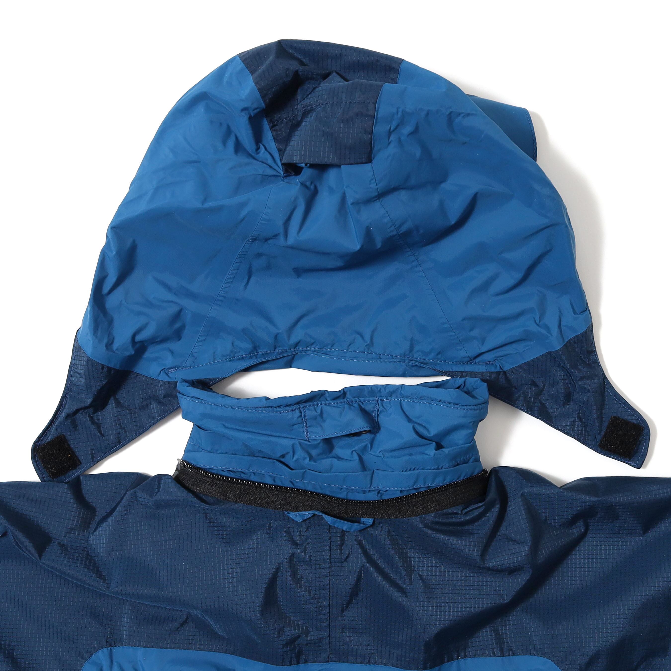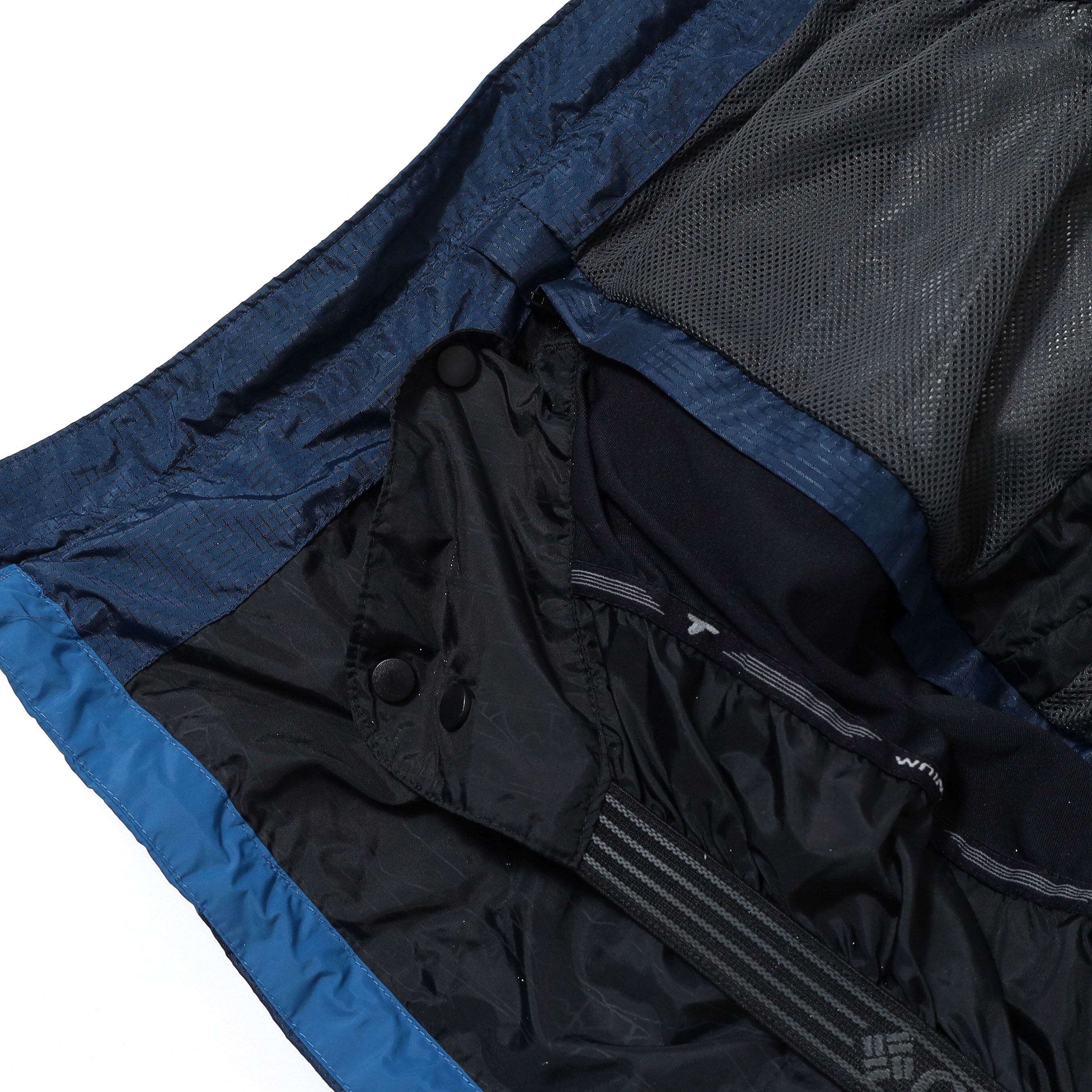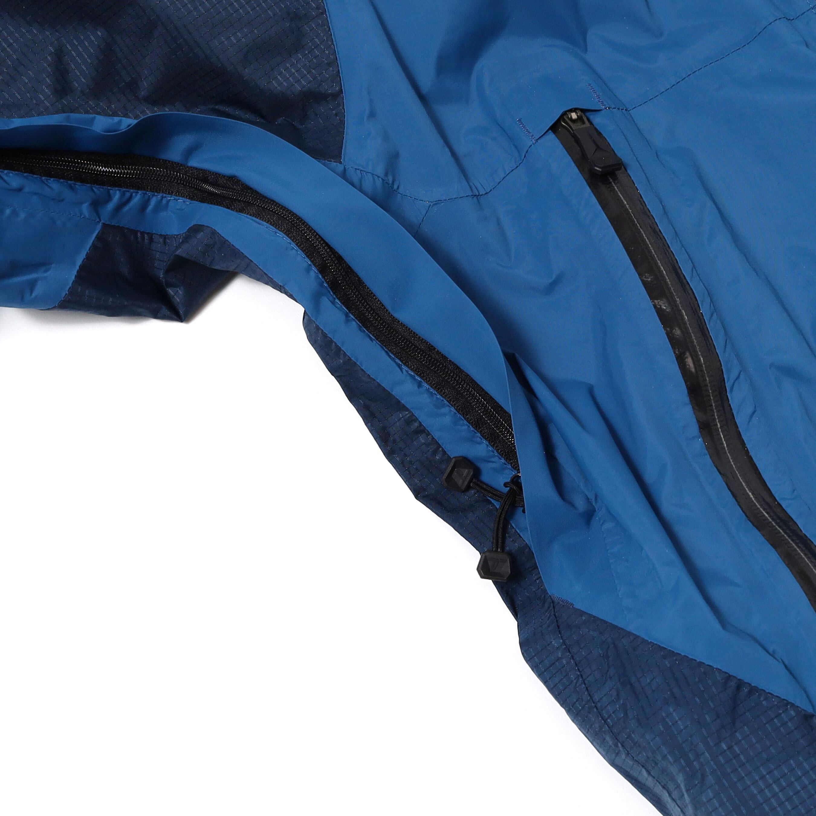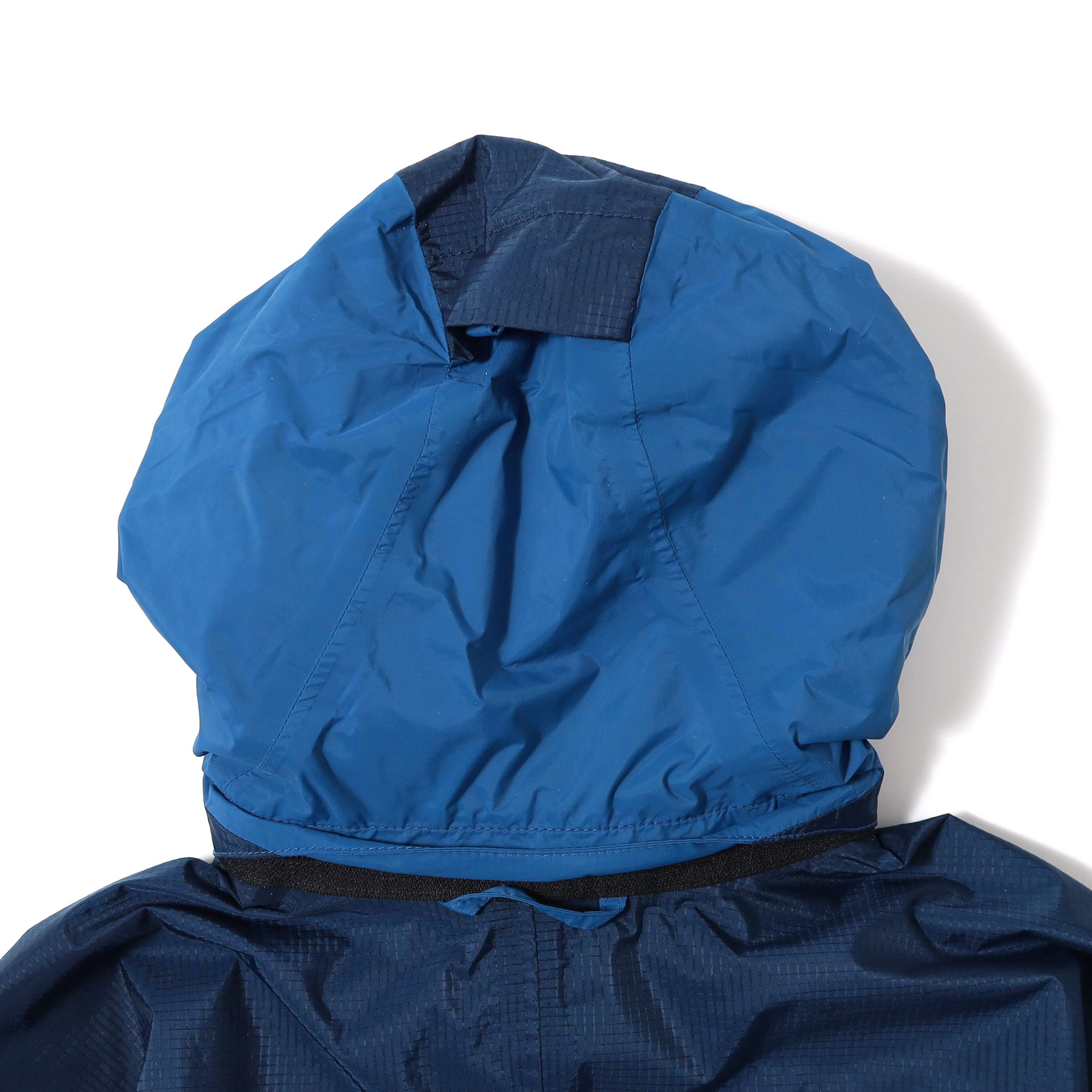 Columbia TITANIUMのジャケットです。スノーウェアラインらしく、パウダースカートや内側の大きなポケット等機能面も抜群で、何より2トーンのブルーのカラーリングが最高にかっこいいです。取り外し可能なフードで、着方を変えられるのも嬉しいポイントです。